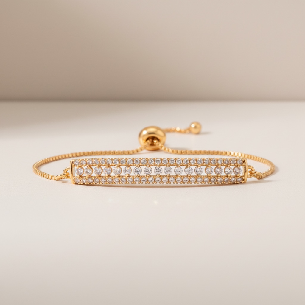 Minimal gold crystal bar bracelet with adjustable fit—perfect for everyday elegance and modern styling