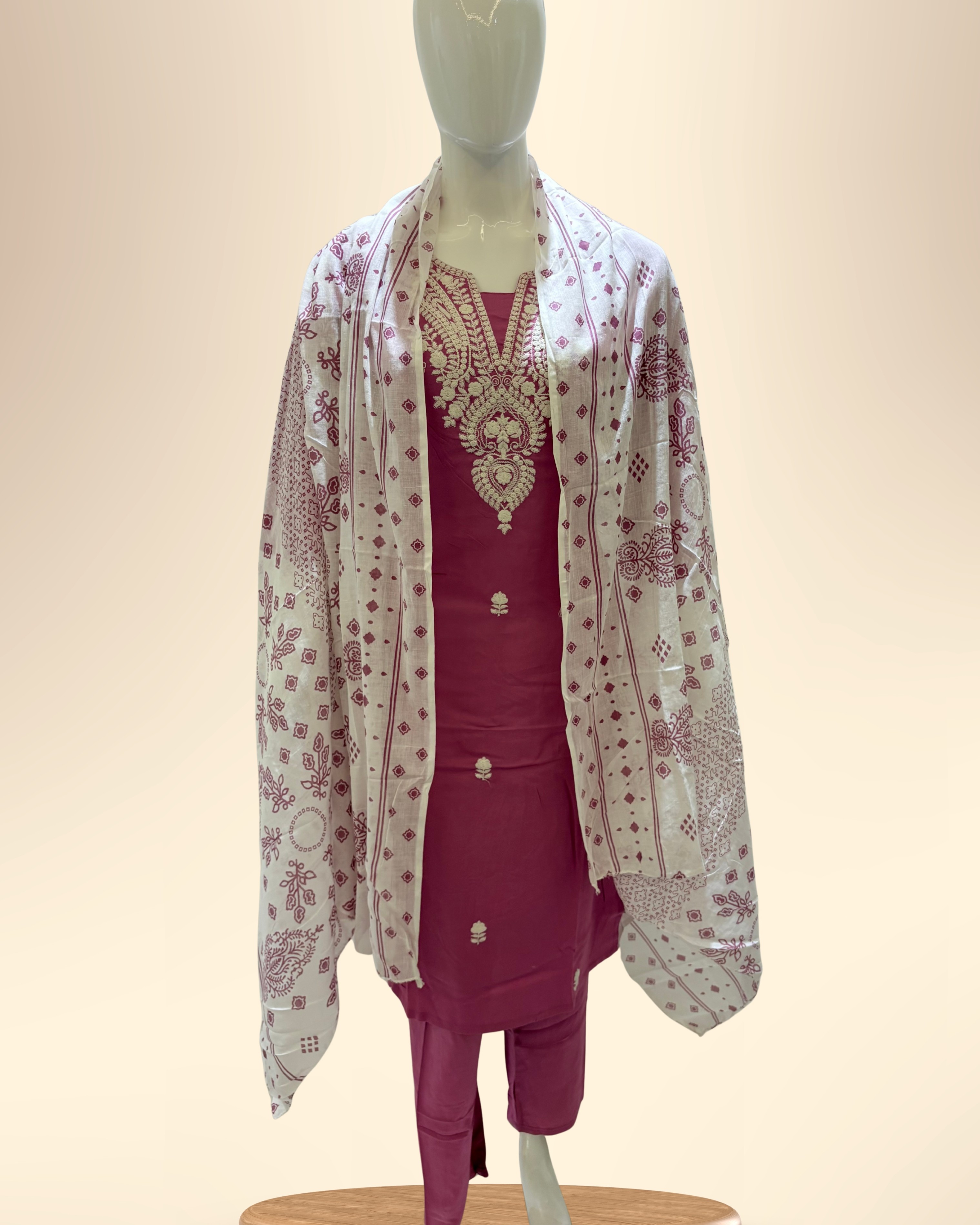 Comes with matching pants & printed dupatta